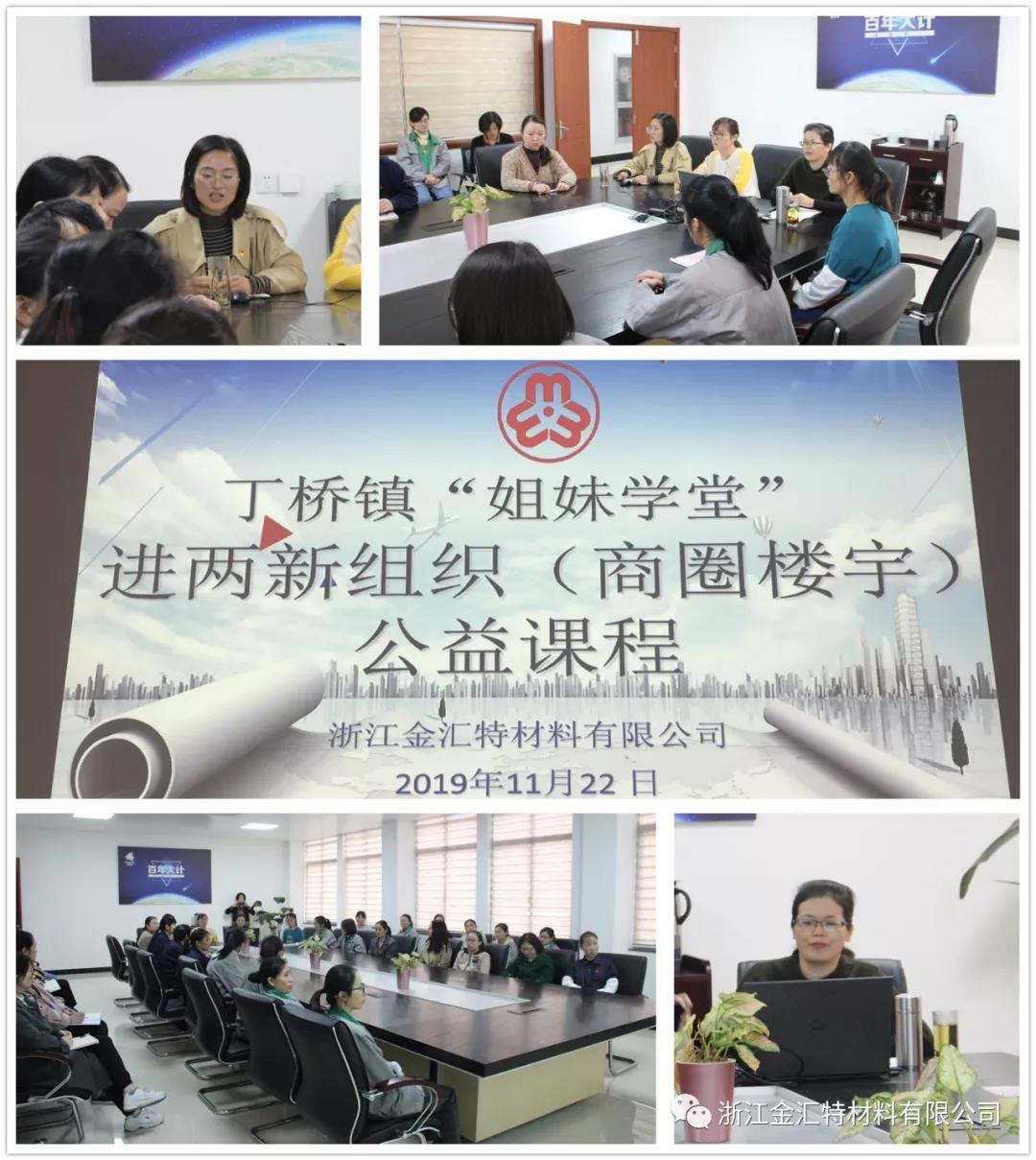 良好的心理素质与我们的健康、工作学习、人生幸福等都有着十分密切的关系,为了帮助大家激活内在动力,在工作中提升团队的凝聚力,在家庭中创造更多的幸福与快乐,2019年11月22日下午,浙江金汇特材料有限公司妇联组织女职工30余人参加了“姐妹学堂”进两新组织公益活动《打造家庭爱的能量场一一情绪管理》 专题讲座。此次讲座邀请了海宁名师、海宁姐妹学堂讲师、全国优秀辅导员、全国青少年礼仪教育标兵宓东群讲师。丁桥镇妇联顾权主席到会并参与了讲座。