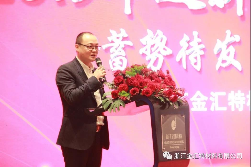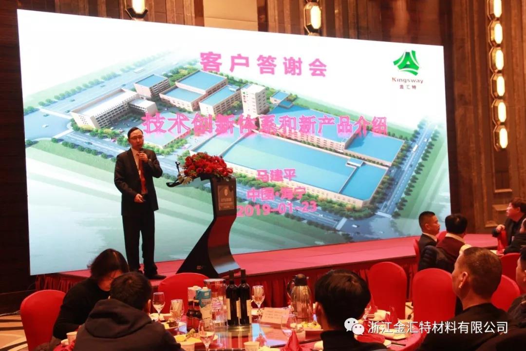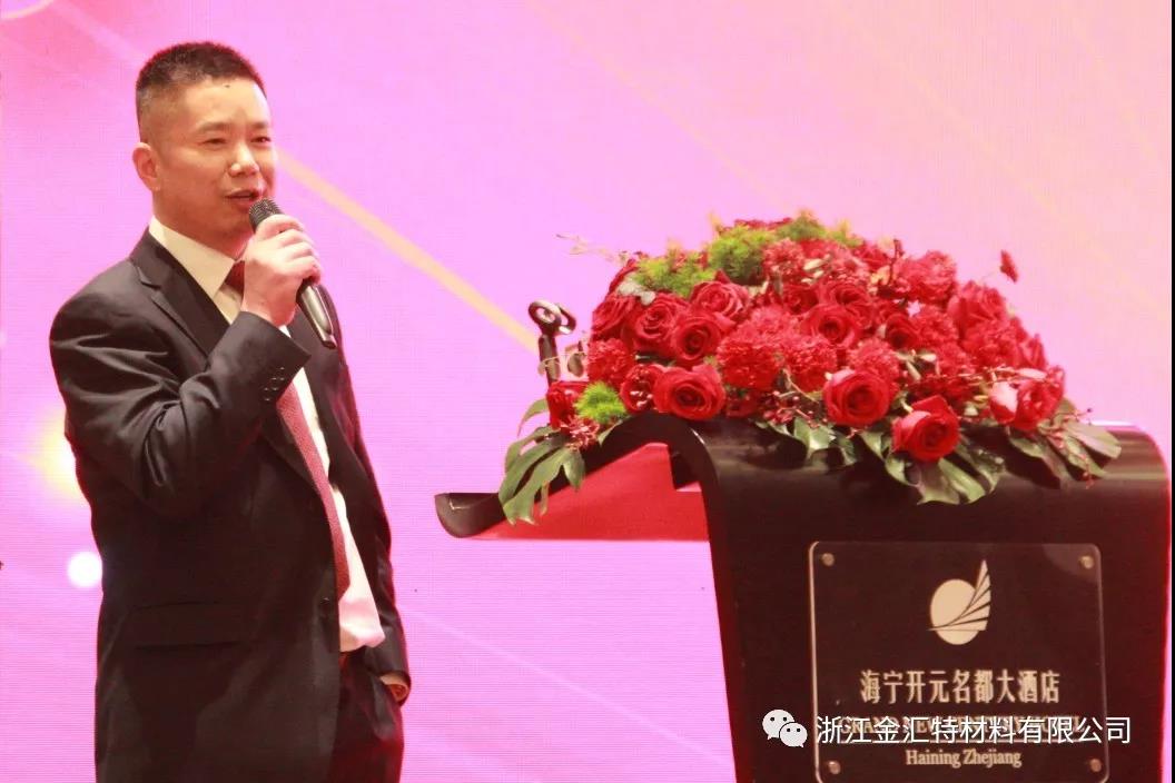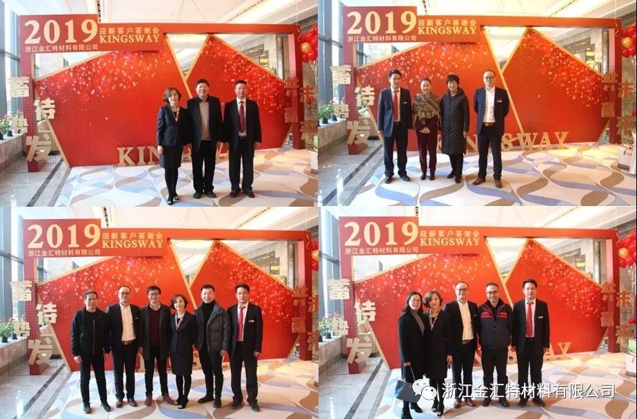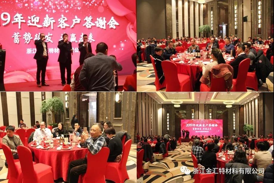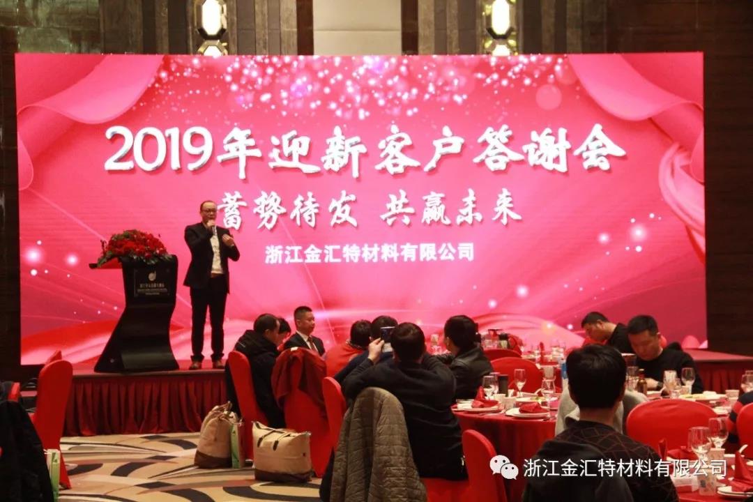 2019年1月23日下午,浙江金汇特材料有限公司“蓄势待发、共赢未来” 2019年迎新客户答谢会,在海宁市开元名都大酒店隆重举行,共有各级领导和来自海内外的100多位合作伙伴和客户共赴盛会,共叙友情。
