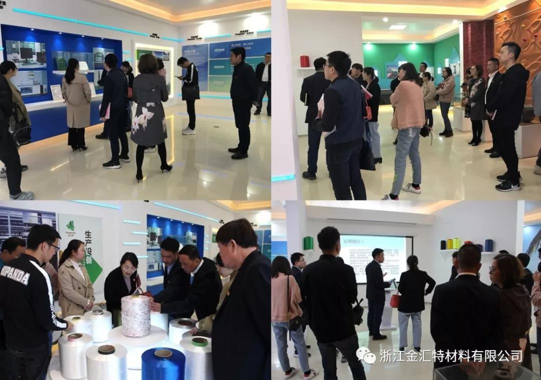 在签约和记录片结束后,金汇特公司董事长兼支部书记、总经理陈燕带领小贷公司一行前往产品展示厅进行参观,党员江长明认真讲解胶管、消防水龙等产品应用于日常生活、军用等领域,党员们饶有兴趣地对展区产品进行了详细的了解,观看产品影视片,为我司短短几年内在创新科技领域走到了行业的前列赞叹不已。