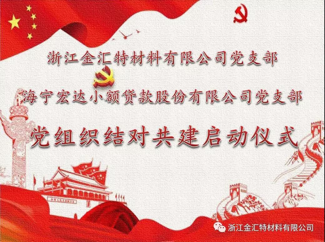 为深入学习贯彻习近平新时代中国特色社会主义思想,进一步提升基层党组织建设,发挥基层党组织堡垒作用,决定浙江金汇特材料有限公司党支部与海宁宏达小额贷款股份有限公司党支部进行两新支部签约结对共建暨主题党日活动。