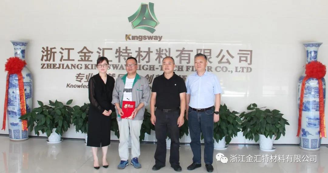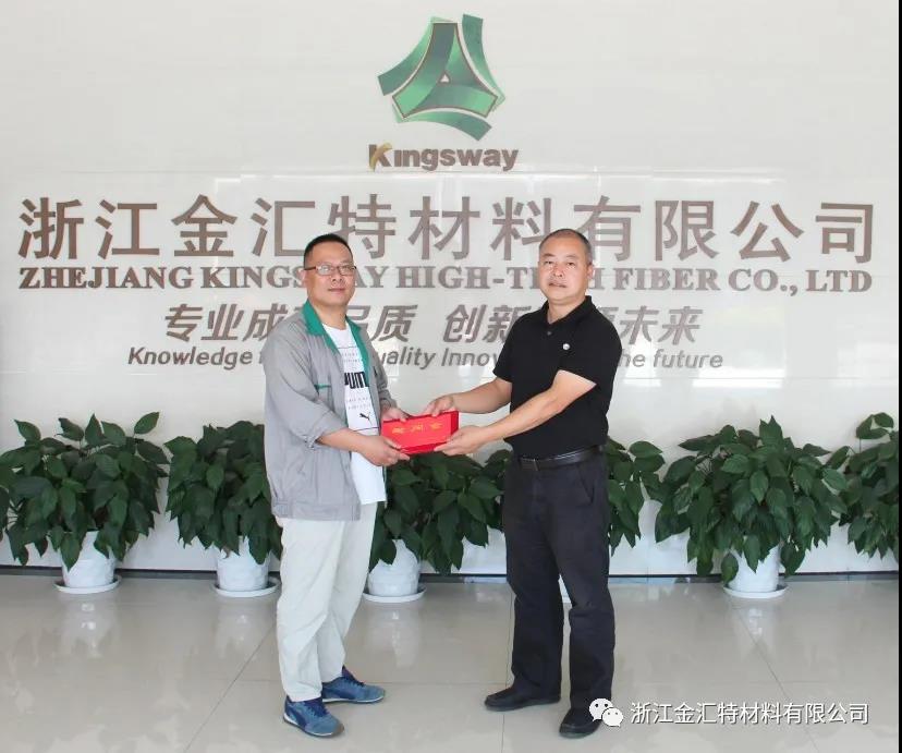 海宁市总工会领导到金汇特公司为潘建青颁奖